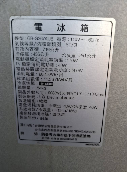 LG 雙門對開 冰箱 716公升 特價9500