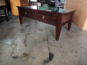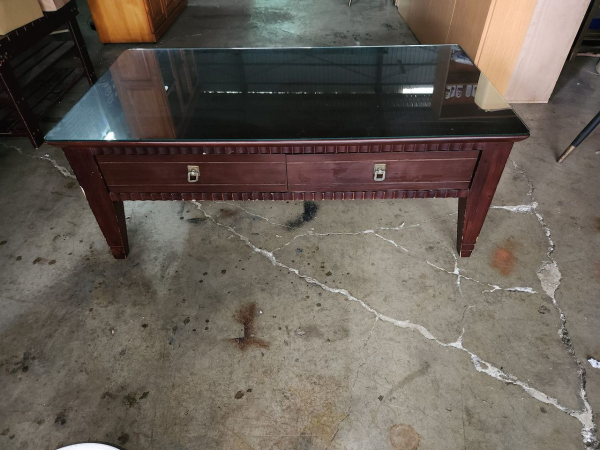 台南二手家具 歐式 實木茶几附0.5cm厚玻璃
